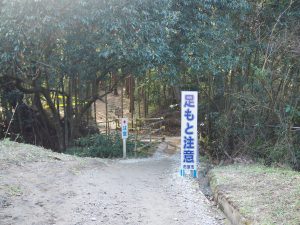 駐車場から500mほど歩くと、目的の地層に到着します。高低差があり、行きは下り、帰りは上りが主体です。